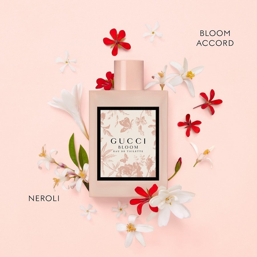 GUCCI Bloom sisaldab jasmiini, tuberoosi ja india kombreetumi triot, kuid asub jõustavate nootide ja erinevuste ühendava jõu toel eneseavastuse teekonnale. GUCCI Bloom Eau de Toilette kehastab Bloomi aeda sädelevas poeetilises koiduvalguses, kui iga lill on kaunistatud hommikuse kasteheinaga, ja kannab endas lillerohke õitseva aia rikkalikku aroomi. Selle täiustamiseks on lisatud neroli mesiselt magusaid ja roheliselt tsitruselisi noote. Neroli õrn värskus ja taevalik sära iseloomustavad täiuslikult seda õhetavat versiooni Bloomi imeliste valgete lillede tunnusaroomist.