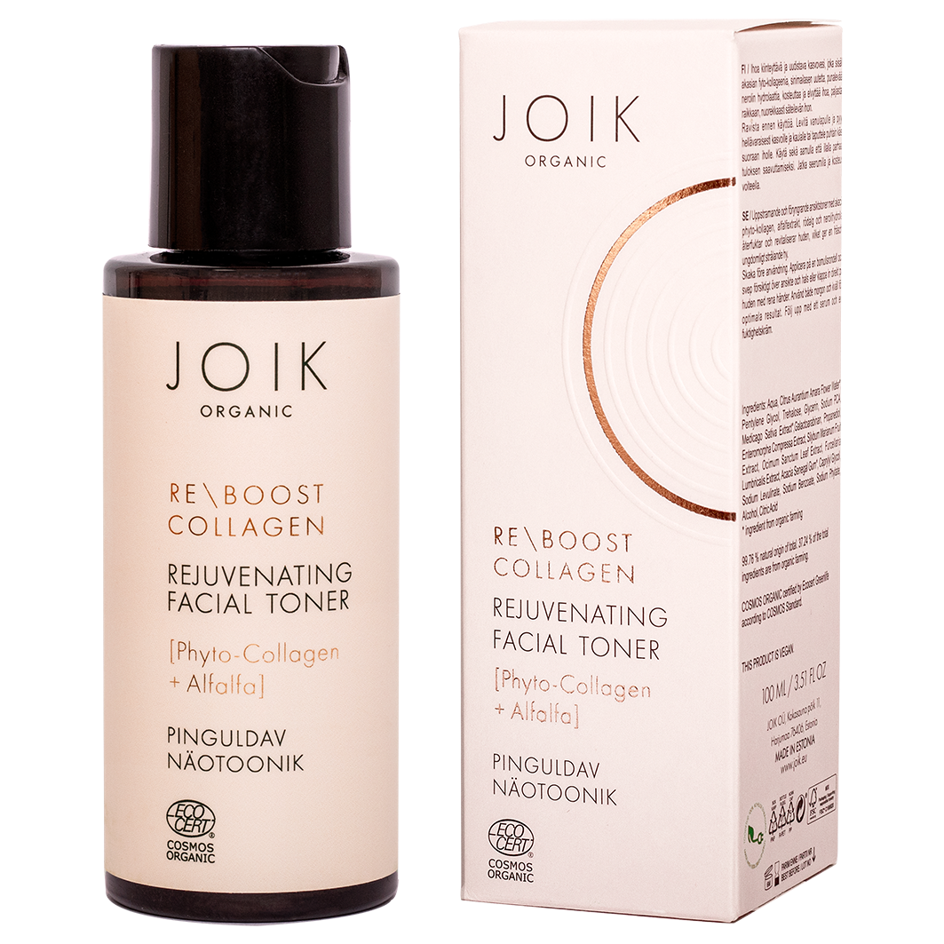 JOIK ORGANIC lutserni ja punavetika ekstraktide ning füto-kollageeniga rikastatud näotoonik pinguldab ja elustab nahka, tuues esile vitaalse ja noorusliku sära. Toonik aitab säilitada naha niiskustasakaalu, valmistab naha ette järgnevate hooldustoodete kasutamiseks ning toetab kollageeni tootmist.
