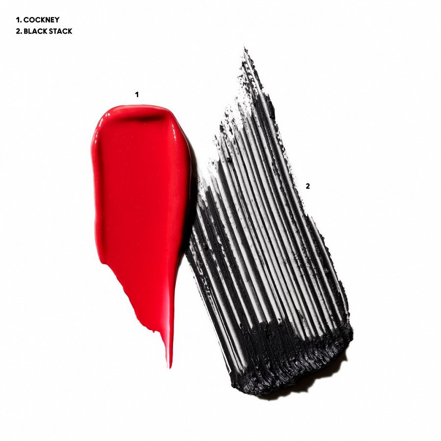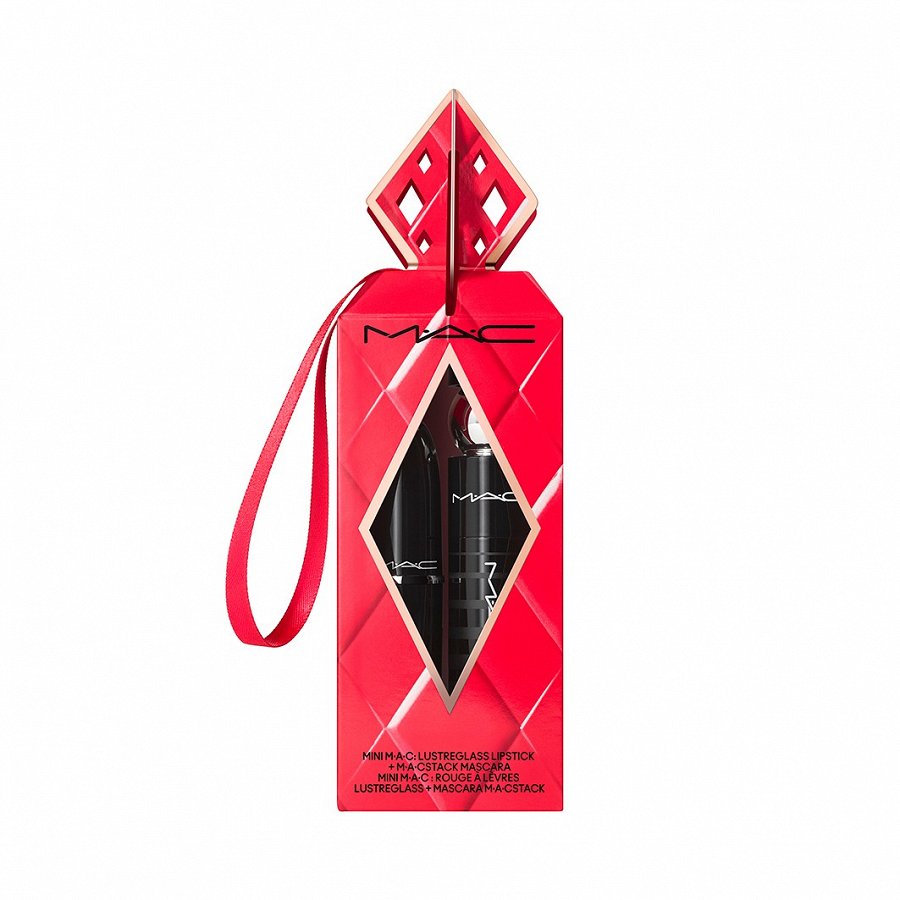 Hea väärtuspakkumisega pühadepakendis minikinkekomplekt silmadele ja huultele, mis sisaldab huulepulka Lustreglass Sheer-Shine Lipstick toonis Cockney ja ripsmetušši M·A·CStack Mascara.