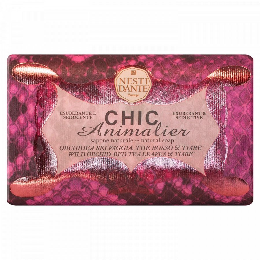 NESTI DANTE Chic Animalier Red Phyton seep metsiku orhidee, punase tee ja tiarega. Ei sisalda mineraalseid õlisid, ja parabeene, naha- ja keskkonnasõbralike koostisosadega.Sobib veganitele.