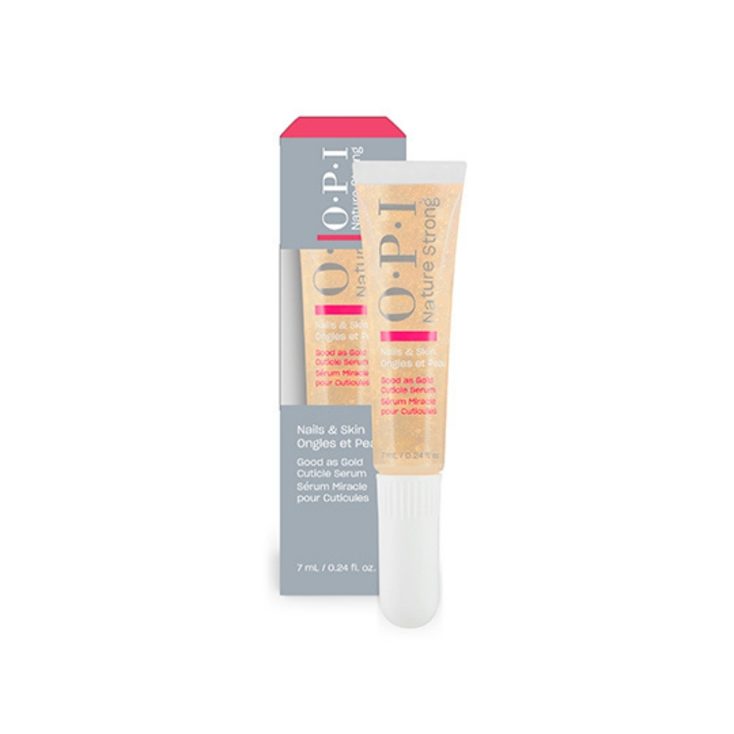 OPI Nails&Skin Good As Gold Cuticle Serum kiirelt imenduv, OPI MoodBloom™ lõhnatehnoloogiaga, geelseerum pakub kohest niisutust ja leevendust kuivadele küünenahkadele. Küüneseerumit on rikastatud glütseriiniga, mis leevendab ja pehmendab nahka. Ideaalne kaaslane käekotti kiireks hoolduseks päeva jooksul.