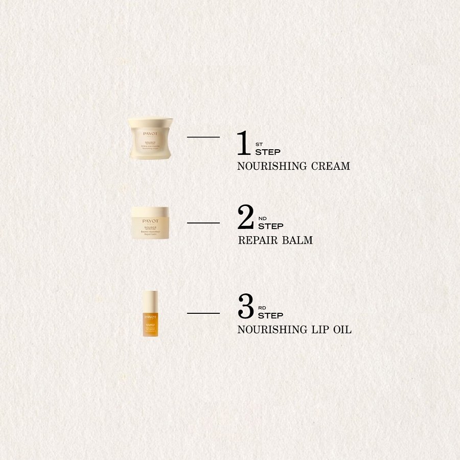 Kõrge mee kontsentratsiooniga huulepalsam toidab ja annab huultele sära terveks päevaks. PAYOT Source Nutrition Nourishing Lip Oil saffloori keramiidide, mimoosi mee ja looduslikult esineva kilet moodustava ainega koostis toidab, tugevdab ja kaitseb huuli väliste agressioonide, näiteks külma eest.