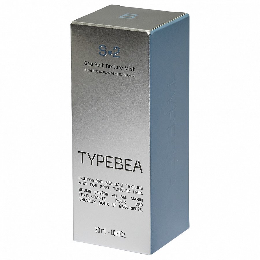 See TYPEBEA S2 Sea Salt Texture Mist niisutav meresoolaudu kliiniliselt tõestatud taimse keratiini infusiooniga on loodud pakkuma veatut rannatekstuuri, tugevdades ja parandades silmnähtavalt juukseid. Ideaalsed soengusse sättimata juuksed on puudutamisel pehmed ja lainelised.